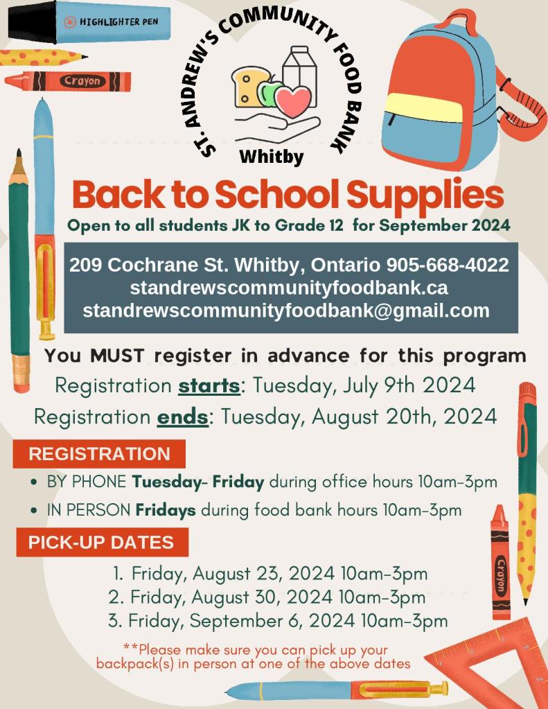 Our Back to School Supplies Backpack program is now OPEN for registration. You MUST register in advance for this program. Registration can be done 3 ways: